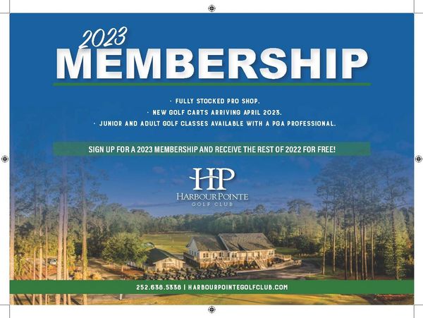 Mailed to residents within five miles of Fairfield Harbour to promote the new name/renovation of the restaurant and free months of golf membership.